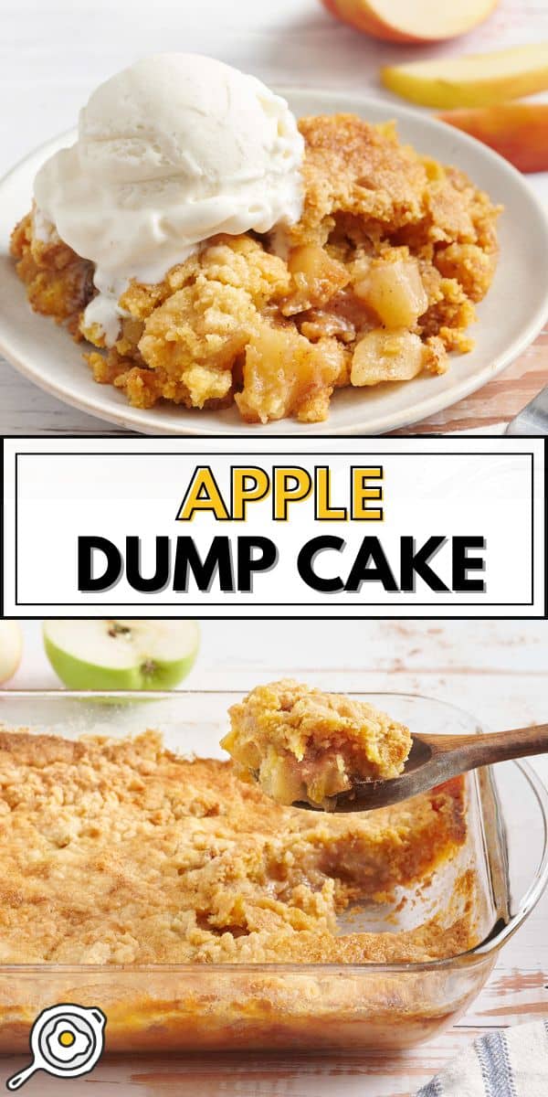 An easy Apple Dump Cake recipe with fresh apples, cake mix, and butter. Just dump, bake, and enjoy warm with ice cream!