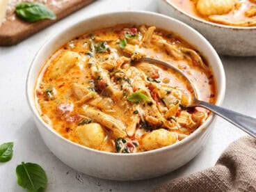 $9.45 recipe / $1.58 servingEveryone loves the marry me recipe craze and for good reason. Creamy, comforting, and full of flavor, it' the kind of dish that has a way of stealing your heart. I turned this tasty concept into a cozy soup with tender shredded chicken, pillowy gnocchi, creamy broth, and little pops of sundried tomato that make every spoonful irresistible.