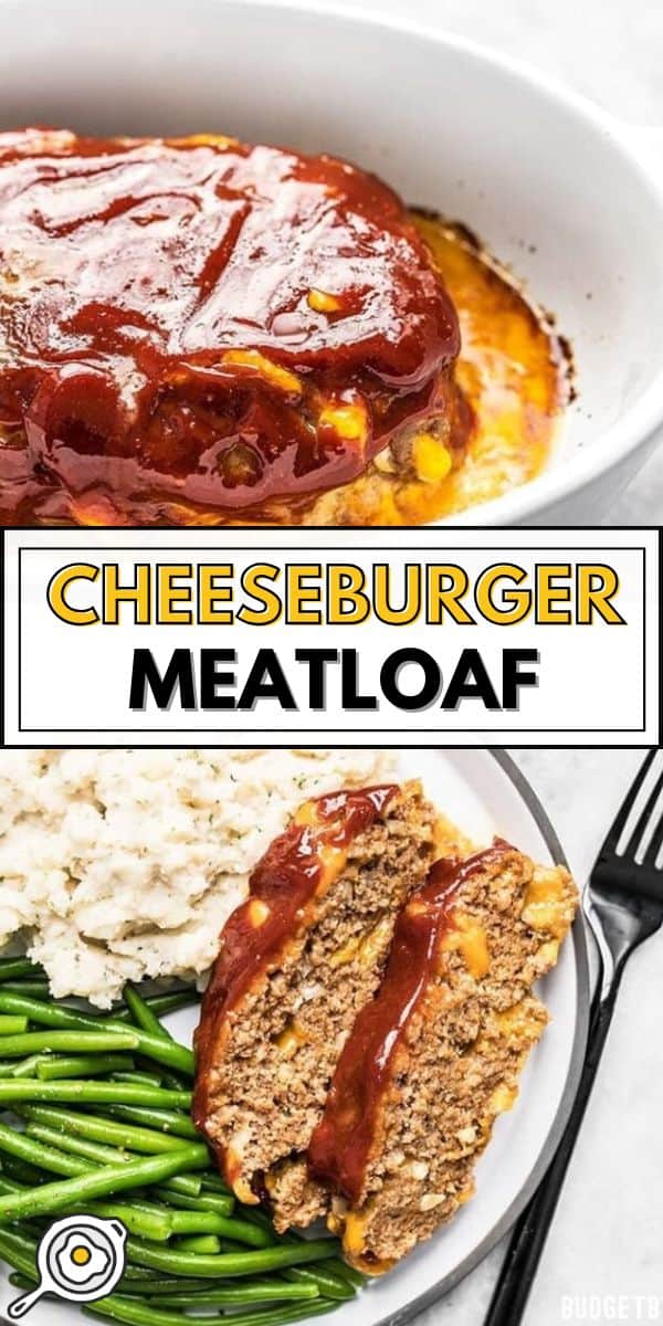 Make the glaze: In a small bowl, stir together ½ cup ketchup, 1 Tbsp brown sugar, 1 tsp yellow mustard, and 1 tsp Worcestershire sauce. Spread the sauce over the cheeseburger meatloaf.
