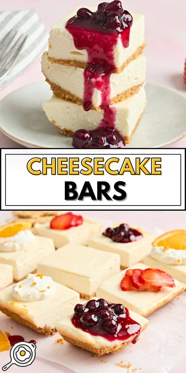 - Once chilled, use the parchment overhang to lift the cheesecake from the pan. Slice into bars, serve, and enjoy!