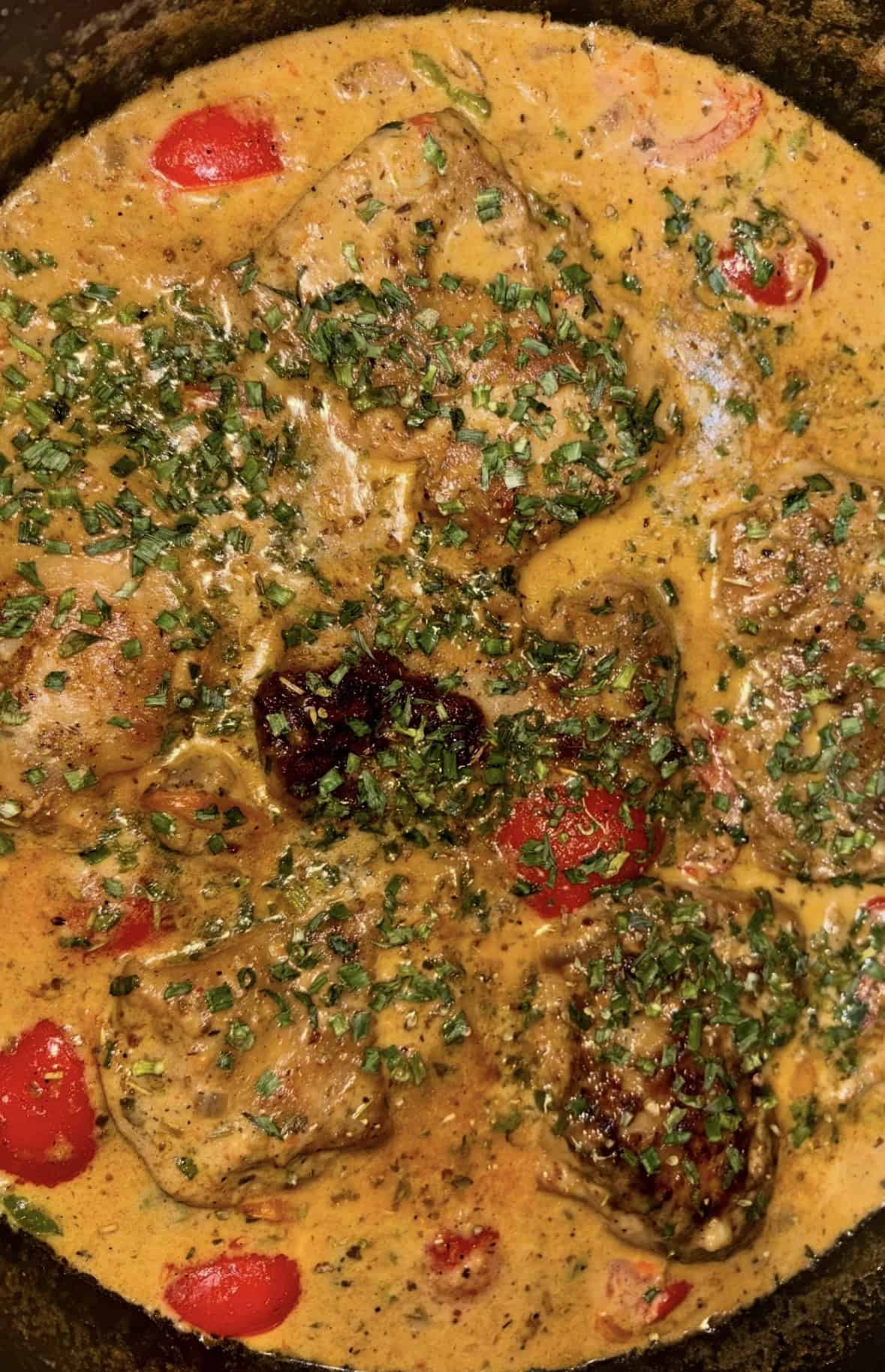 - Finally, return the cooked chicken breasts to the skillet and spoon the creamy sauce over top. Allow the chicken to heat through. Serve with fresh chopped parsley (optional), and enjoy!