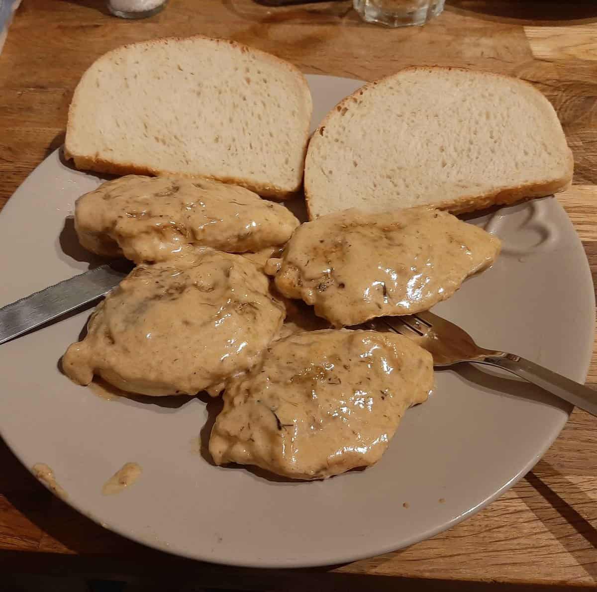 Incredibly simple and delicious. So, so good. The sauce is amazing, such a mild yet noticeable garlic taste. We served over rice, we did double the sauce recipe as our chicken breast were quite large. Really loved this recipe. I could just eat the sauce.