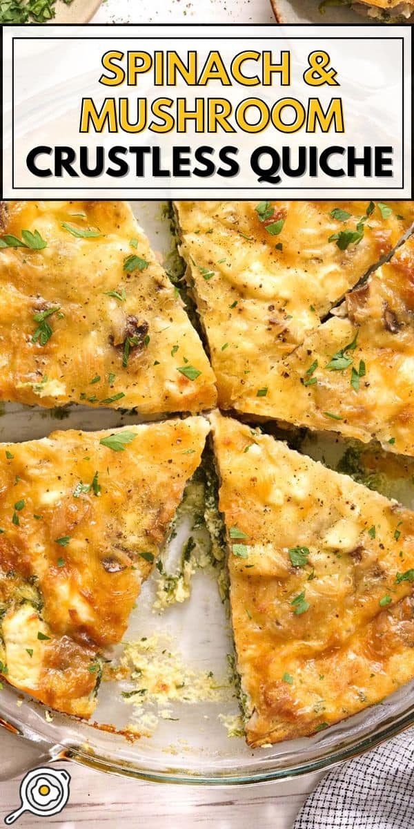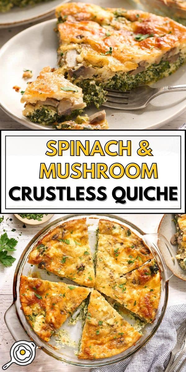 I usually serve this crustless quiche for breakfast because it already checks a lot of boxes in one slice: protein from the eggs, veggies from the spinach and mushrooms, and plenty of cheesy flavor to make it feel satisfying!