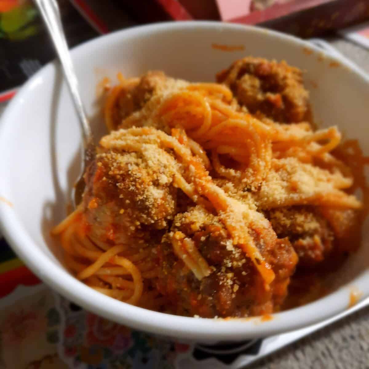 Spaghetti and meatballs hit the spot tonight. I did all beef, so I upped the seasoning and added 1/4 tsp crushed red pepper.