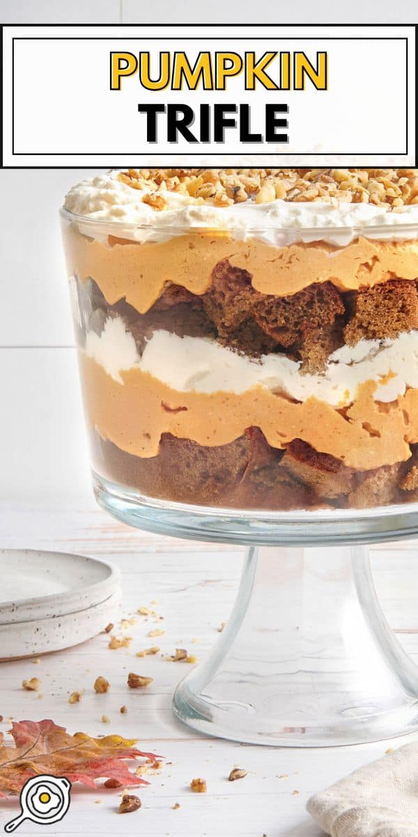 Love pumpkin spice? Try this Pumpkin Trifle with homemade spiced cake, pumpkin cheesecake filling, and whipped cream. A fall dessert to impress!