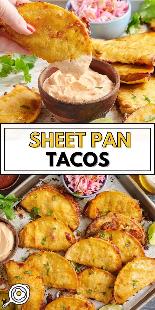- Make your sheet pan tacos crispy! Drizzling the sheet pan with oil and baking the tacos in a hot oven (425°F) helps the tortillas get golden and crisp. If you like your tacos extra crunchy, you can leave them in the oven for a few more minutes at the end.