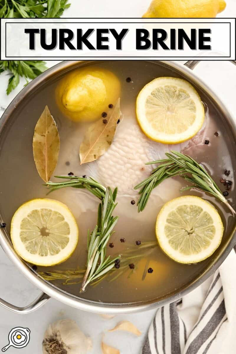 - Herbs, Spices & Citrus: We used a combination of rosemary, bay leaves, garlic, peppercorns, and lemon to add even more flavor to the brine.