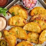Serve the sheet pan tacos warm with the dipping sauce and any additional toppings you like, such as sliced avocado, chopped cilantro, or a squeeze of fresh lime.